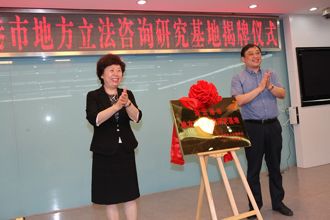 舒小平指出,作为地方高校,淮海工学院的发展始终与港城的发展同呼吸、共命运。地方立法权的获得,为全面深化法治连云港建设提供良好契机,也为淮海工学院拓展和深化政产学研合作提供新的机遇。当前,淮海工学院发展正处于重要机遇期,以淮海工学院为基础建设江苏海洋大学正式列入江苏省“十三五”发展规划纲要。在创建大学的进程中,我们迫切需要市里的支持和帮助;同时,我们始终把有为有位作为工作指导,鼓励校地互动交流,加强智库建设,搭建合作平台,主动贴近地方、主动融入地方、主动服务地方,在服务地方发展的过程中体现大学的价值。因此,地方立法咨询研究基地的建立是一个优势互补、合作共享的好平台。