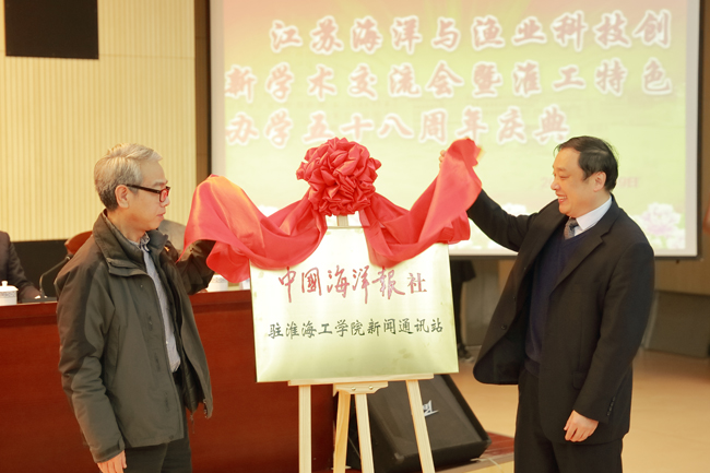 我校与中国海洋报社签署合作框架协议,决定设立“中国海洋报社驻淮海工学院新闻通讯站”。校长史金飞与中国海洋报社社长赵晓涛为通讯站揭牌。“通讯站”将聚焦学校改革发展、学科建设、社会服务等领域,充分发挥国家海洋行业主流媒体作用,全面反映学校在创建江苏海洋大学进程中的重大典型和重要成果,为大学创建营造良好的社会舆论氛围。