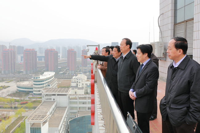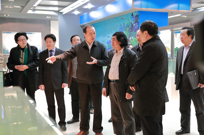 张同生一行首先来到主楼顶俯瞰校园,考察学校建设用地和教学用地情况,以及校区建设规划情况,随后到海洋资源开发研究院分析测试中心和海洋馆参观考察。