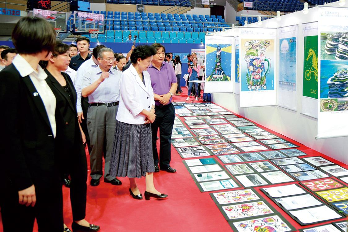 中共中央政治局委员、国务院副总理刘延东参观全国大中学生海洋文化创意设计大赛历届优秀作品展