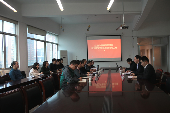 3月14日下午,市委宣传部副部长李武一行到我校艺术学院走访调研文创工作,副校长金芙蓉及艺术学院领导班子陪同考察了艺术学院实验室、教师工作室和0806艺创空间,并在艺术学院会议室进行了座谈。