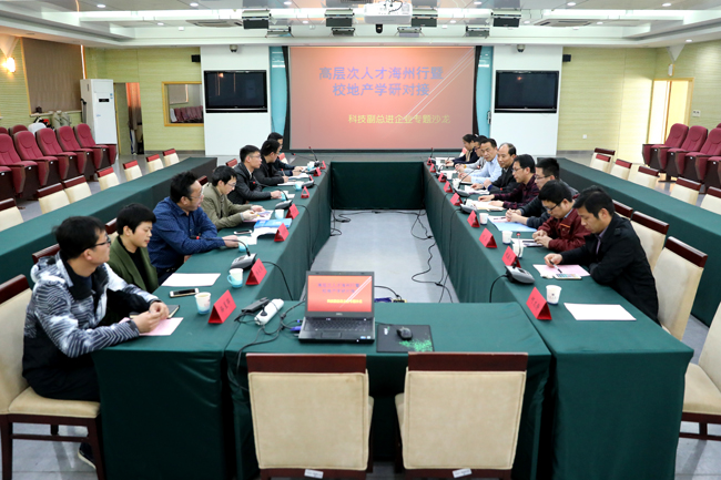 继年初与连云区大型产学研对接会和3月与市科技局大型产学研对接会后,4月11日,科技处、技术转移中心联合海州区科技局、海州区所属材料类企业在我校会议中心东海厅举办“高层次人才海州行”产学研对接沙龙。连云港德邦精细化工有限公司、江苏东浦精细陶瓷科技股份有限公司、江苏更大包装有限公司、连云港天常复合材料有限公司、连云港龙塔研磨材料有限公司等企业老总参会。