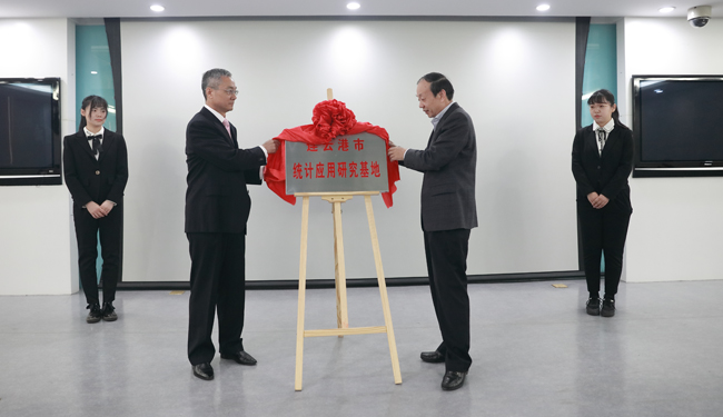 4月20日上午,我校与连云港市统计局共建的“连云港市统计应用研究基地”签约与揭牌仪式在会议中心东海厅举行。副校长舒小平与市统计局副局长于卫军为基地揭牌,市社科联副主席周一云出席仪式,教务处处长、理学院院长李纪明与于卫军签订了合作协议。会议由校科技产业处处长徐启华主持。