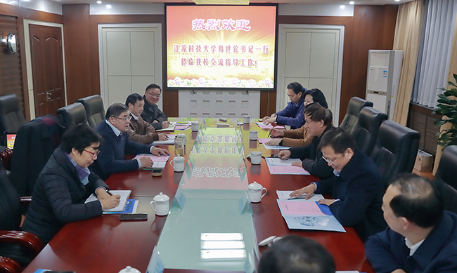 12月12日下午,江苏科技大学党委书记葛世伦、副校长姜朋明、嵇春艳等一行6人来我校交流调研。校党委书记王自力、副校长许兴友、李梅英、严云洋在行政楼二楼会议室接待了来宾。