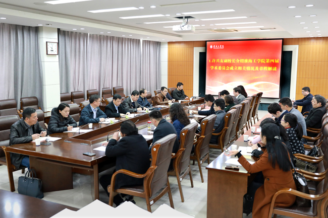 3月18日上午,淮海工学院第四届学术委员会第一次会议在文渊楼会议室召开。校长宁晓明出席会议,副校长许兴友主持会议,第四届学术委员会全体委员参加了会议。