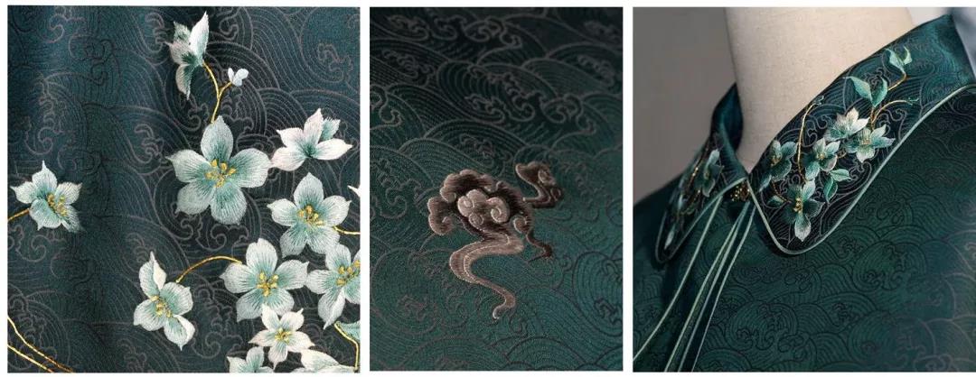 王栋回放了这场服饰秀,只见其中一个模特身着一袭月白流纱裙,搭配墨绿水纹上裳,走上T台,在舞台灯光的映衬下,整套服装色彩更加丰富,似雪如云、云雪相衬,仿佛一幅流动的中国山水写意画。这套月白流纱裙是“海上云台玉兰韵”系列作品中的一件。苏绣、手推绣等传统工艺,将连云港市花——玉兰花表现得惟妙惟肖,或含苞、或绽放,点缀得恰到好处。中式的剪裁,借鉴西方的简约线条,大裙身裙摆,轻纱隐隐,衬托女性柔美的曲线和灵动的气质。