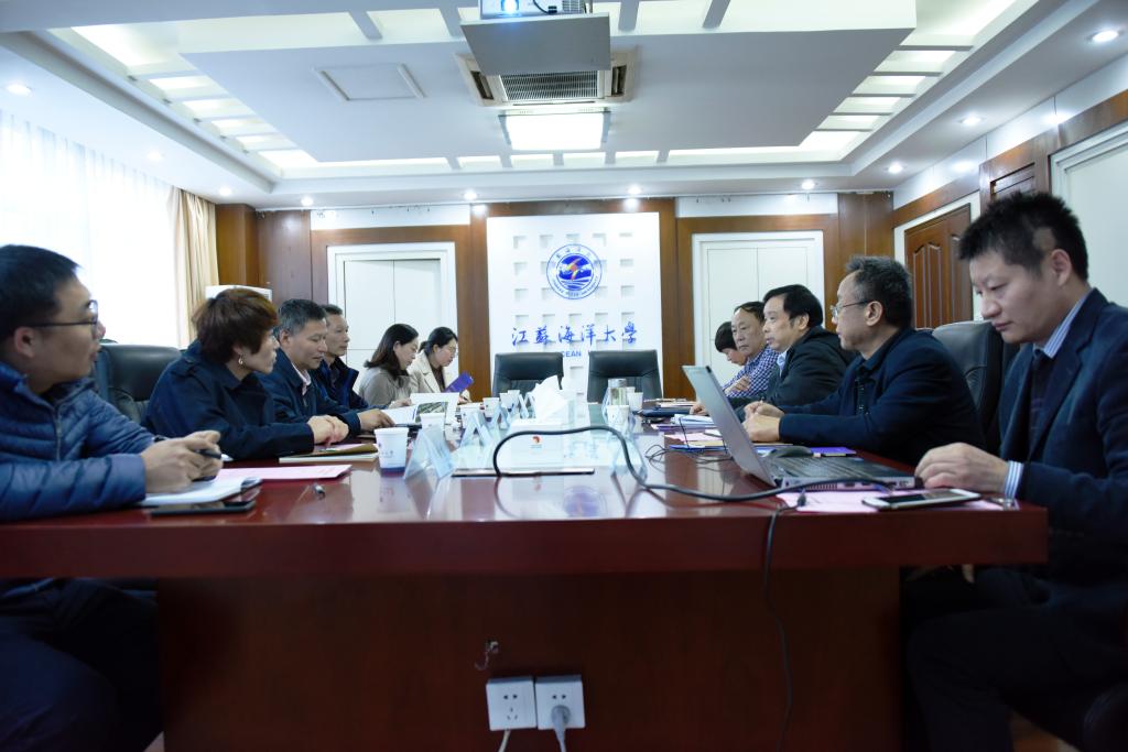 许兴友副校长代表学校对考察组一行的到来表示热烈欢迎,并对江苏省工业和信息化厅、连云港市工业和信息化局多年来对我校小微企业基地建设、互联网+等平台建设等工作的关心与指导表示衷心感谢。许兴友简要介绍了我校的办学历史和办学特色,并就江苏海洋大学大力发展内涵建设工作进展情况作了介绍,与会人员一同观看了学校宣传片。
