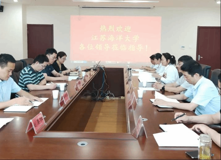 2020年6月30日下午,江苏海洋大学科技处、化学工程学院专家团队赴连云港食品药品检验检测中心进行调研。连云港市市场监督管理局党组成员宋其德、食品药品检验检测中心主任杨晖、陈健副主任与陈红副主任及相关部门负责人接待并参加座谈。
