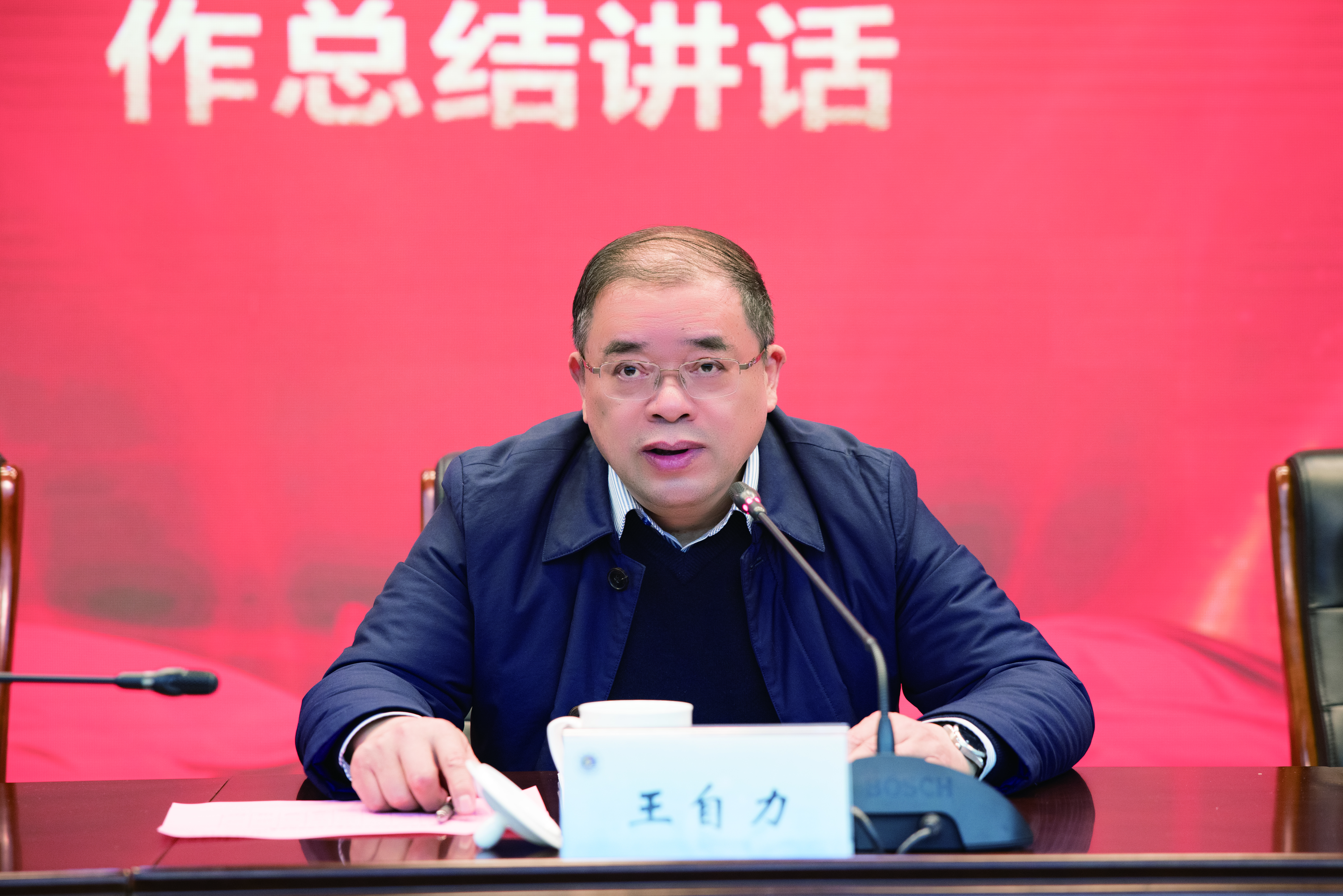 校党委书记王自力作总结讲话。王自力表示,这一年来学校科技工作成绩的取得,是学校广大科研工作者潜心学问、甘于奉献、追求卓越的结果。他代表学校党委,向获得表彰的先进集体和先进个人表示热烈的祝贺。王自力在讲话中指出,这次会议是学校在推进博士单位创建征程上召开的一次重要会议,是学校推进科技工作、提升办学实力的关键之举,希望这次会议的召开,能够为学校吹响科技强校的号角,为学校提升科研实力、创建博士学位授予单位注入强大的动力。