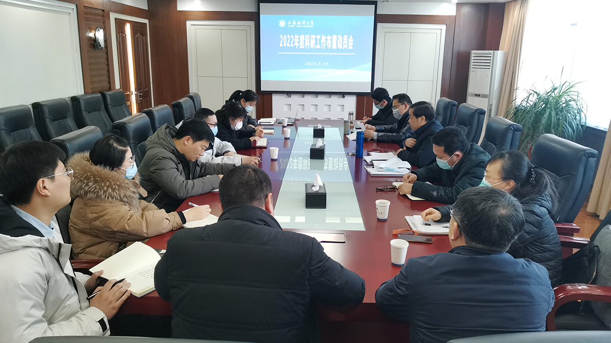 2月19日下午,我校在行政楼二楼会议室召开新学期科研工作推进会议,副校长许兴友出席会议,科学技术处、社会科学处全体人员参加会议,会议传达了学校2022年党政工作布置会暨全面从严治党工作会议精神,推进2022年度科研重点工作。