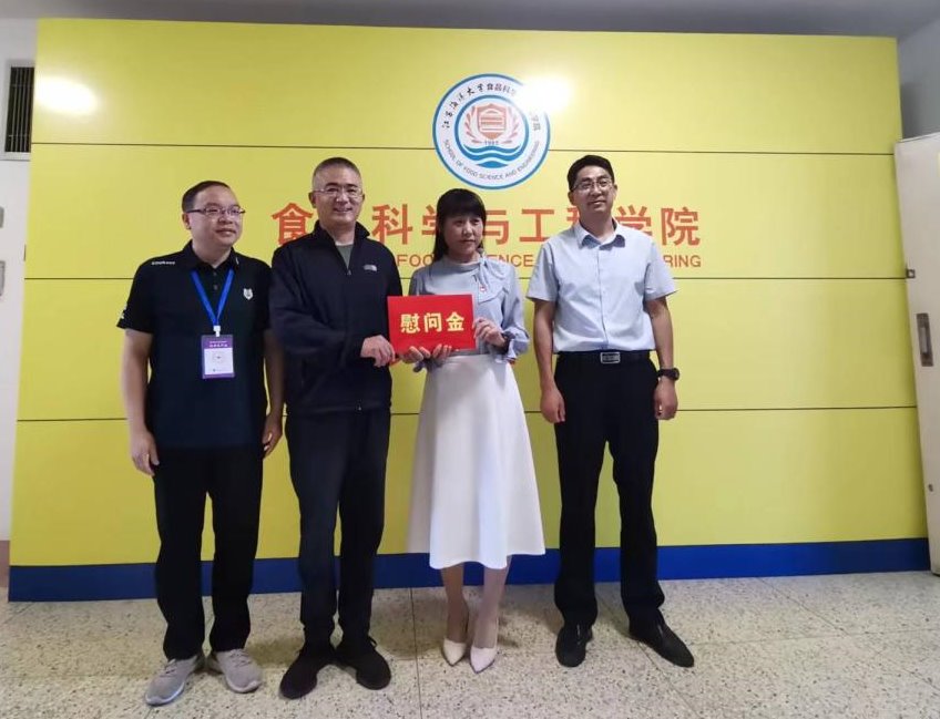 5月30日,正值第六个全国科技工作者日,连云港市科协副主席郭强一行到食品科学与工程学院参观交流,给孙教授送上表彰奖励。科学技术处副处长房耀维教授、副院长盘赛昆教授热情接待。市科协领导对我校在连云港科技工作方面做出的贡献给予了充分的肯定,并就后续的合作进行了深入研讨。