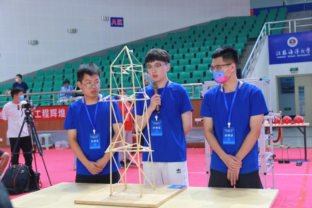 江苏海洋大学就竞赛的竞赛类型、赛前准备、竞赛流程、赛事组织等进行了详细的筹划和实施。竞赛以“三重木塔结构模型设计与制作”为题,竞赛类型分为结构模型展示组、模型加载组两个单元。经过16个小时的善思制作,最终决出特等奖为南京航空航天大学和江苏大学;一等奖为东南大学、南京工业大学、中国矿业大学、河海大学和扬州大学;二等奖为陆军工程大学、三江学院(高职院)、南通大学、中国矿业大学徐海学院、三江学院、江苏科技大学、常州大学、南通理工学院、盐城工学院、江苏海洋大学、南京理工大学紫金学院、南京工程学院和苏州科技大学。