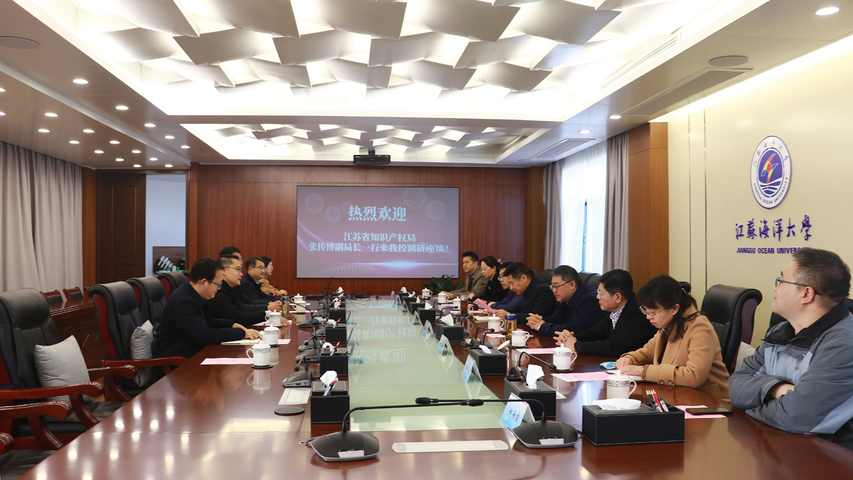 3月1日上午,江苏省知识产权局副局长张传博、连云港市市场监督管理局副局长陈波、马盈一行8人来我校调研,了解我校承担的江苏省高价值专利培育项目开展情况以及江苏省知识产权培训(江苏海洋大学)基地的建设及运行情况。调研座谈会在行政楼五楼会议室举行,副校长申欣出席并主持会议。