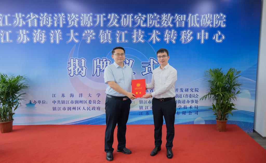 5月27日上午,江苏省海洋资源开发研究院数智低碳院和江苏海洋大学镇江技术转移中心揭牌仪式在镇江市润州区举行。校党委书记王自力、校长宁晓明、副校长申欣,润州区委书记徐心田、区长徐燕等出席揭牌仪式。我校党委办公室、校长办公室、科学技术处、招生与就业处、海洋资源开发研究院相关负责同志参加揭牌活动。