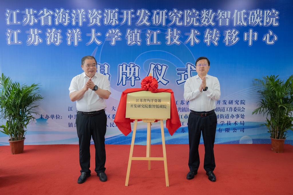 仪式上,王自力和徐心田共同为“江苏省海洋资源开发研究院——数智低碳院”揭牌。