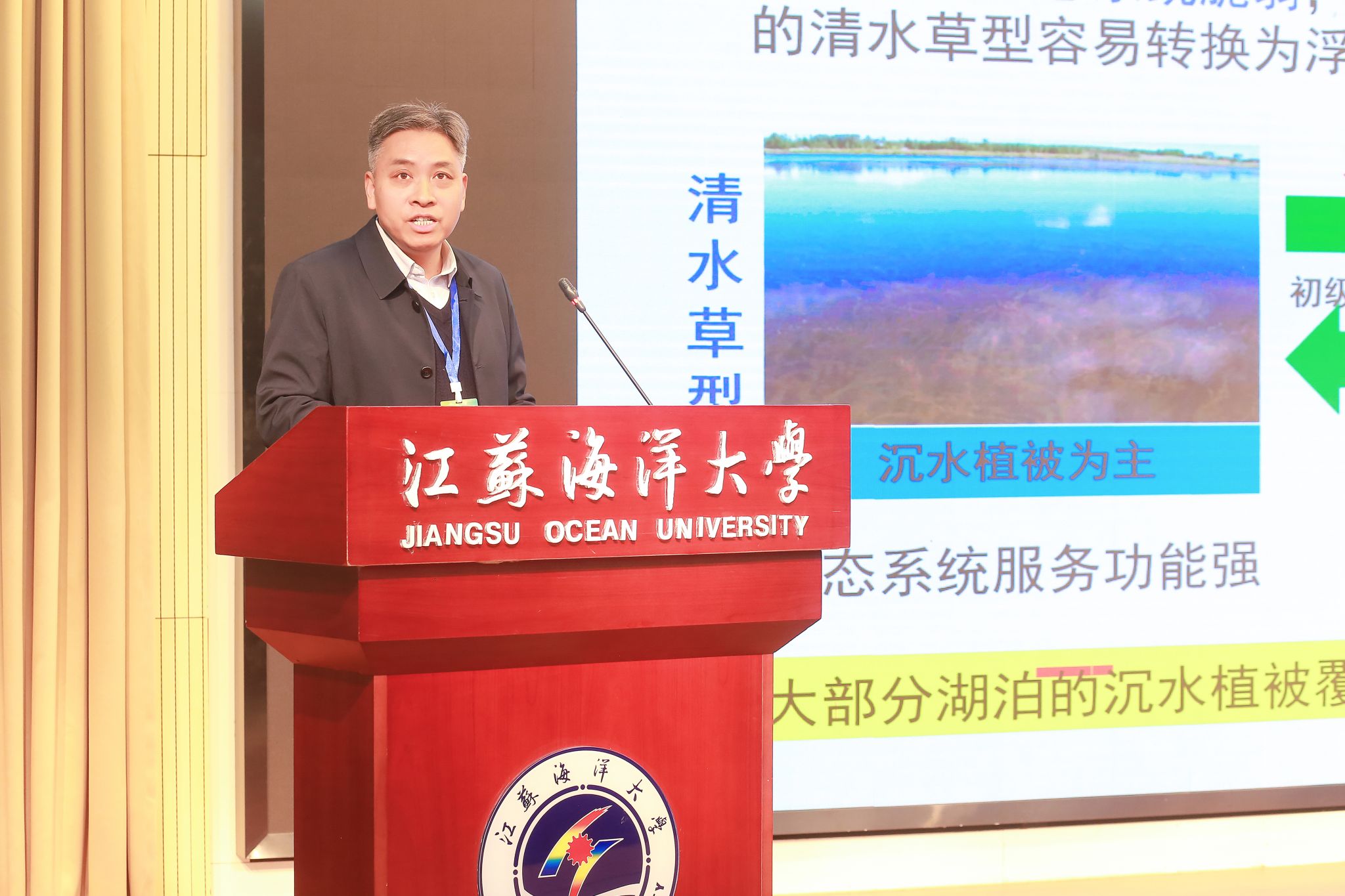 许峰代表学校对年会的召开表示祝贺,对参会嘉宾表示欢迎,对江苏省海洋湖沼学会及各理事单位一直以来对学校事业发展的关心支持表示感谢。他介绍了学校发展历史,以及近年来抢抓海洋强国等多重战略叠加机遇,坚定“四海”服务面向,全力推进“向海”转型和博士学位授予单位建设在师资队伍、学科专业、人才培养、科技创新等方面的发展成效,介绍了更名大学后学校第一次党代会确立的“三建一高”发展蓝图。他指出,习近平生态文明思想、《江苏省海洋产业发展行动方案》等叠加发展机遇,赋予了我们涉海涉湖高校院所及学会新的使命,也为我们发展提供了广阔的空间。他表示,期待与各位专家学者和业界精英深化交流沟通,与各科研院所和行业企业开展更加全面务实的合作,与大家携手,做海洋湖沼科技创新与应用的探索者、攀登者,做水生态文明建设的保护者、建设者!