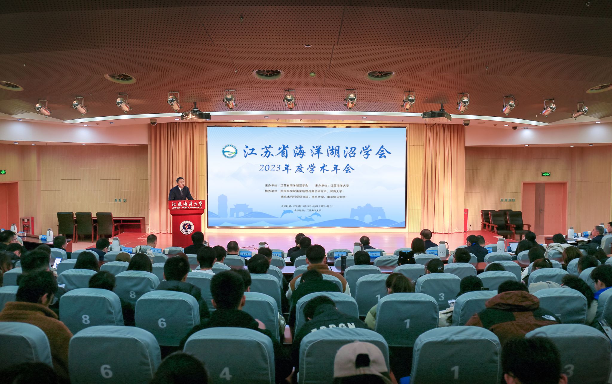 11月25日上午,江苏省海洋湖沼学会2023年度学术年会在我校会议中心召开。校党委书记许峰,江苏省海洋湖沼学会理事长、河海大学副校长郑金海,学会副理事长、南京水利科学研究院副院长吴时强,南京师范大学教授王国祥,中国科学院南京地理与湖泊研究所副所长张运林,学会副理事长兼秘书长、中国科学院南京地理与湖泊研究所研究员薛滨,学会常务理事、副校长申欣等专家和单位负责人出席会议。我省海洋湖沼领域相关部门的会员理事、代表以及我校涉海学科师生共计200余人参加会议。张运林主持年会开幕式及特邀学术报告。