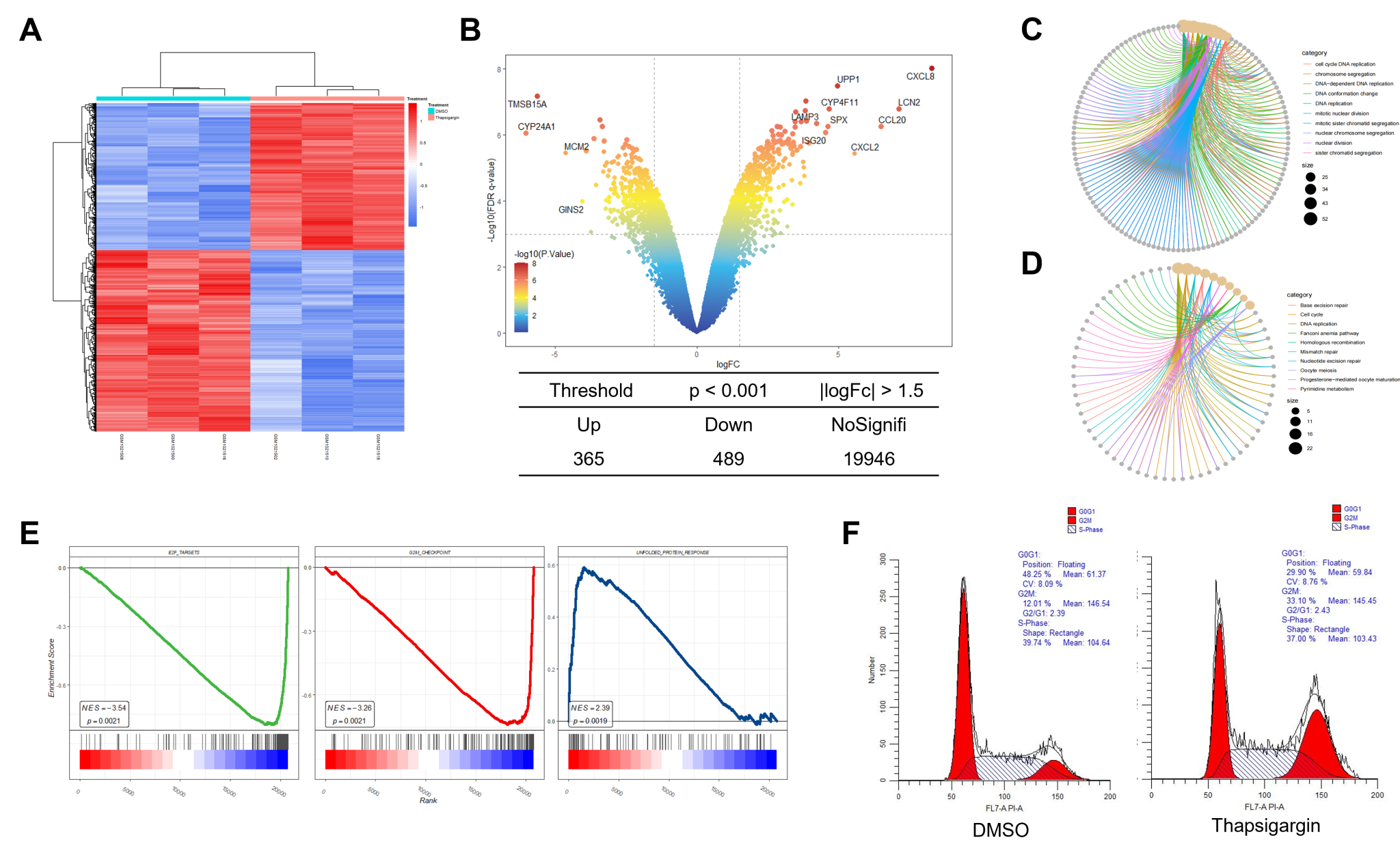 内质网(ER)应激在维持细胞稳态方面具有至关重要的作用,其在肠道上皮富含内质网结构的结直肠癌中对于癌细胞的增殖和存活发挥的作用更为突出,但具体的调节机制还未阐明。为了揭示参与结肠癌内质网应激进展的调节因子,研究团队通过生物信息学分析结肠癌的基因表达谱,发现内质网应激能够上调UPR信号通路,并且抑制E2F靶基因的表达,从而导致结肠癌细胞在G2/M期发生阻滞。