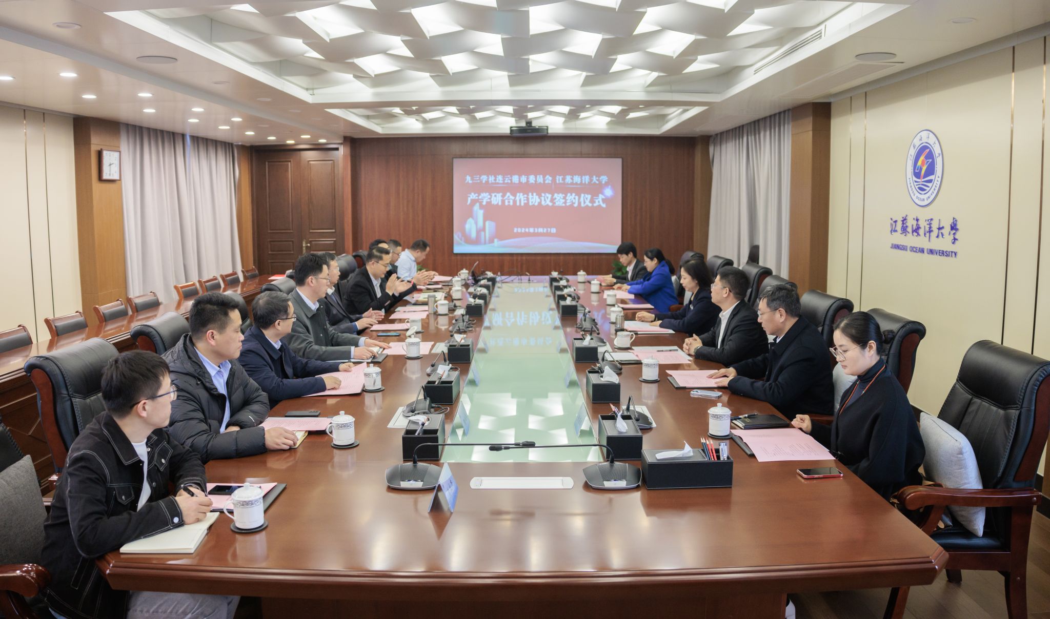 3月27日下午,我校与九三学社连云港市委员会产学研合作签约仪式在行政楼五楼会议室举行。九三学社连云港市主委、连云港市医疗保障局局长杨光,九三学社连云港市副主委、市科学技术局副局长郑刚,我校校长宁晓明、副校长申欣出席。副校长申欣主持签约仪式。