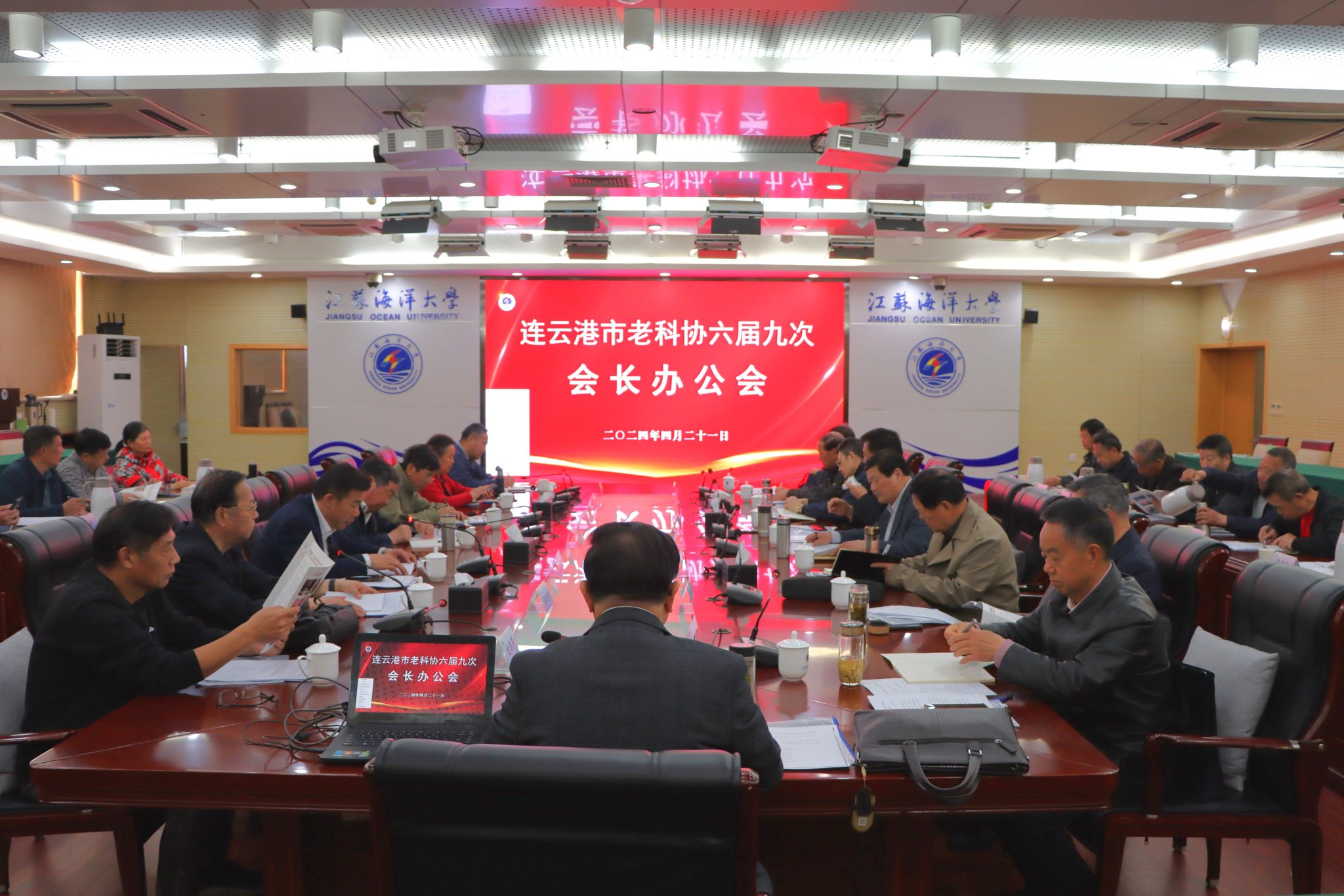 4月21日,连云港市老科协六届九次会长办公会在我校会议中心东海厅召开,副校长郑利军、市老科协会长董春科出席并讲话。连云港市以及县(区)市老科协的会长、副会长、秘书长和各分会、专委会会长等34人参加会议,市老科协副会长张红雨主持会议。