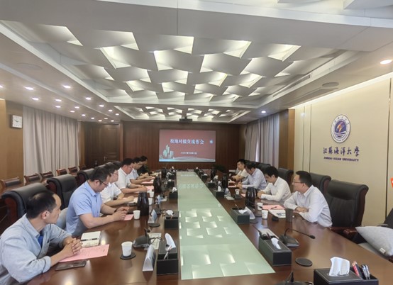 戴红伟向前来开展校地对接活动的邓晶团长一行表示热烈欢迎,并详细介绍了我校近年来科研及科技服务产业的情况。他介绍,学校博士点创建设工作正值关键时期,为充分发挥学校的科技、人才优势,助推学校科技成果转移转化,学校2023年在镇江市润城区布局并建立江苏省海洋资源开发研究院数智低碳院、江苏海洋大学镇江技术转移中心两个载体,大力推动学校科研服务与镇江市产业的融合发展。经过一年多来的运行和探索,相关政产学研合作取得了初步成绩。希望通过本次对接交流,双方能够进一步加大合作深度,努力促成更多的政产学研合作成果。