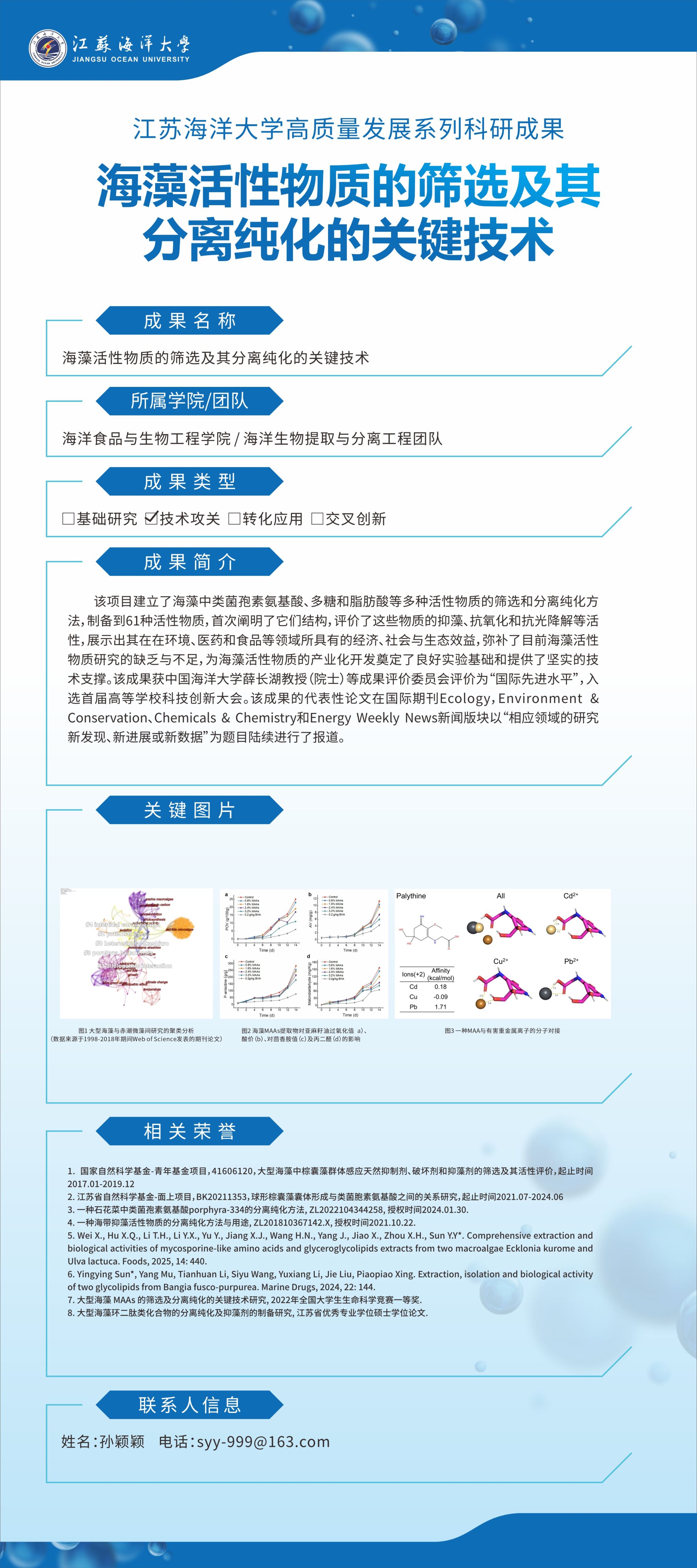 【成果名称】:海藻活性物质的筛选及其分离纯化的关键技术