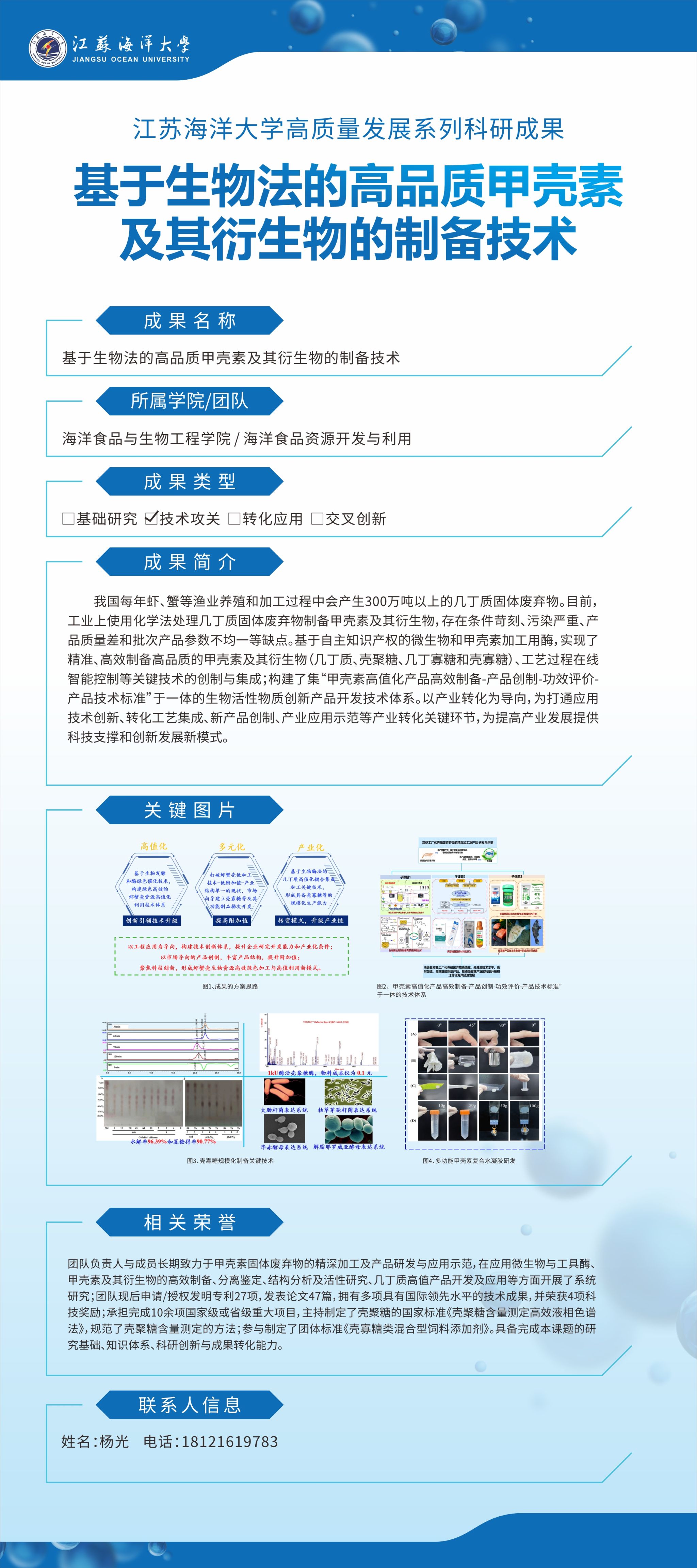【成果名称】:基于生物法的高品质甲壳素及其衍生物的制备技术