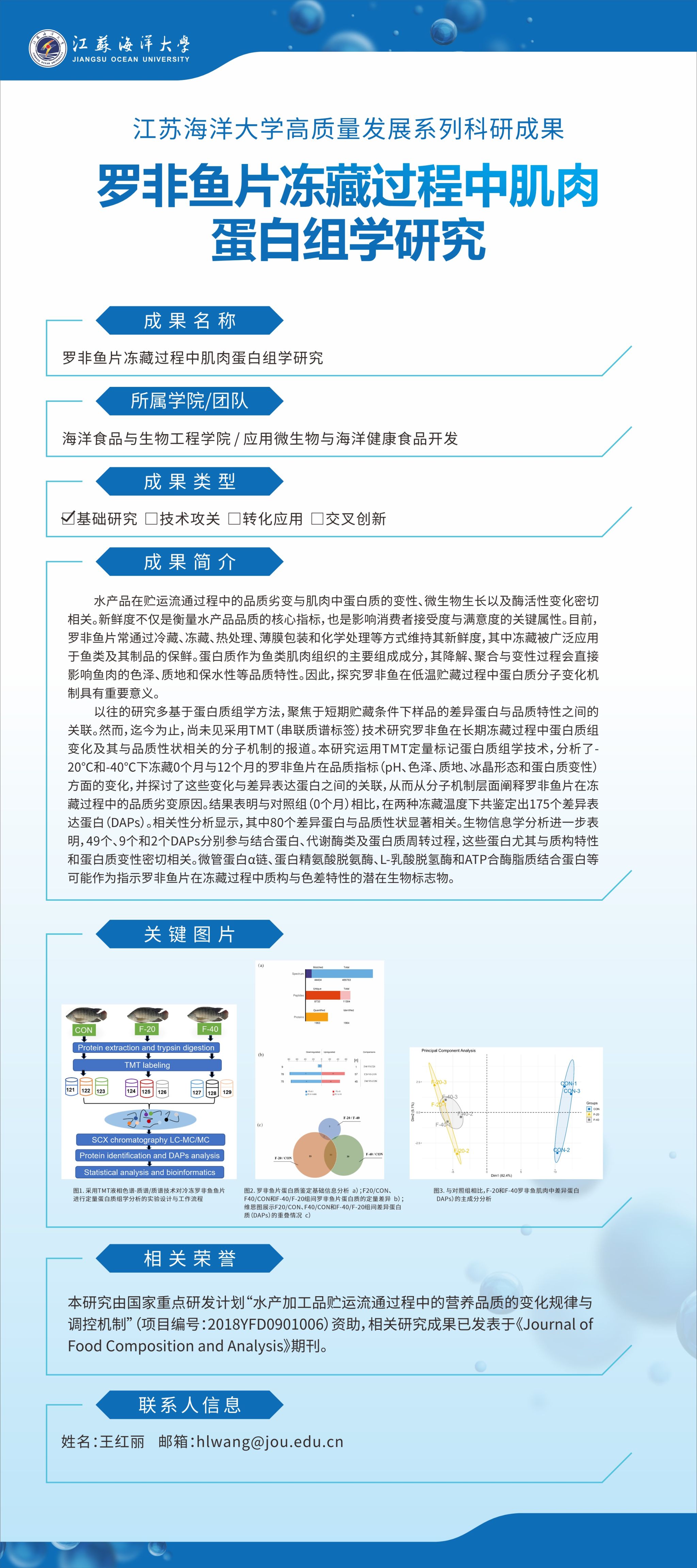 【成果名称】:罗非鱼片冻藏过程中肌肉蛋白组学研究