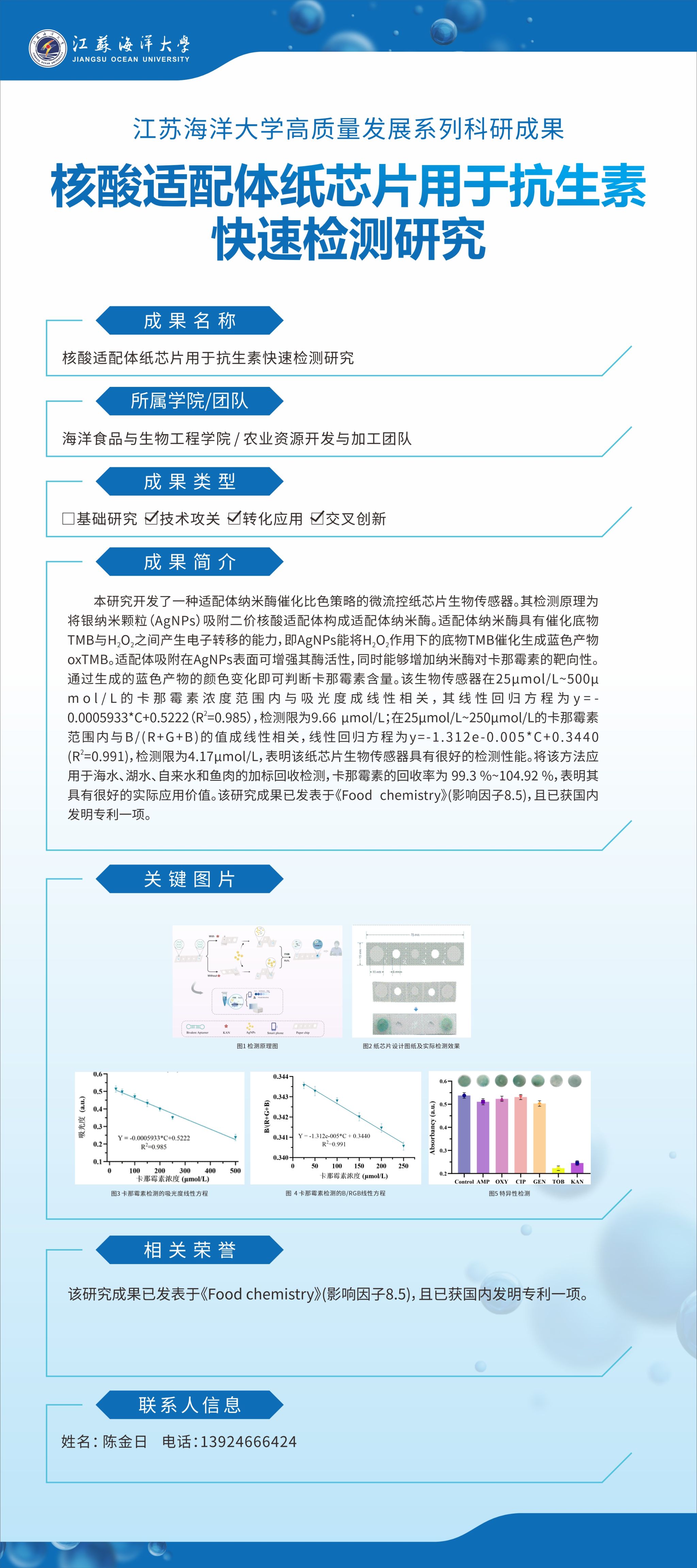【成果名称】:快速检测研究核酸适配体纸芯片用于抗生素