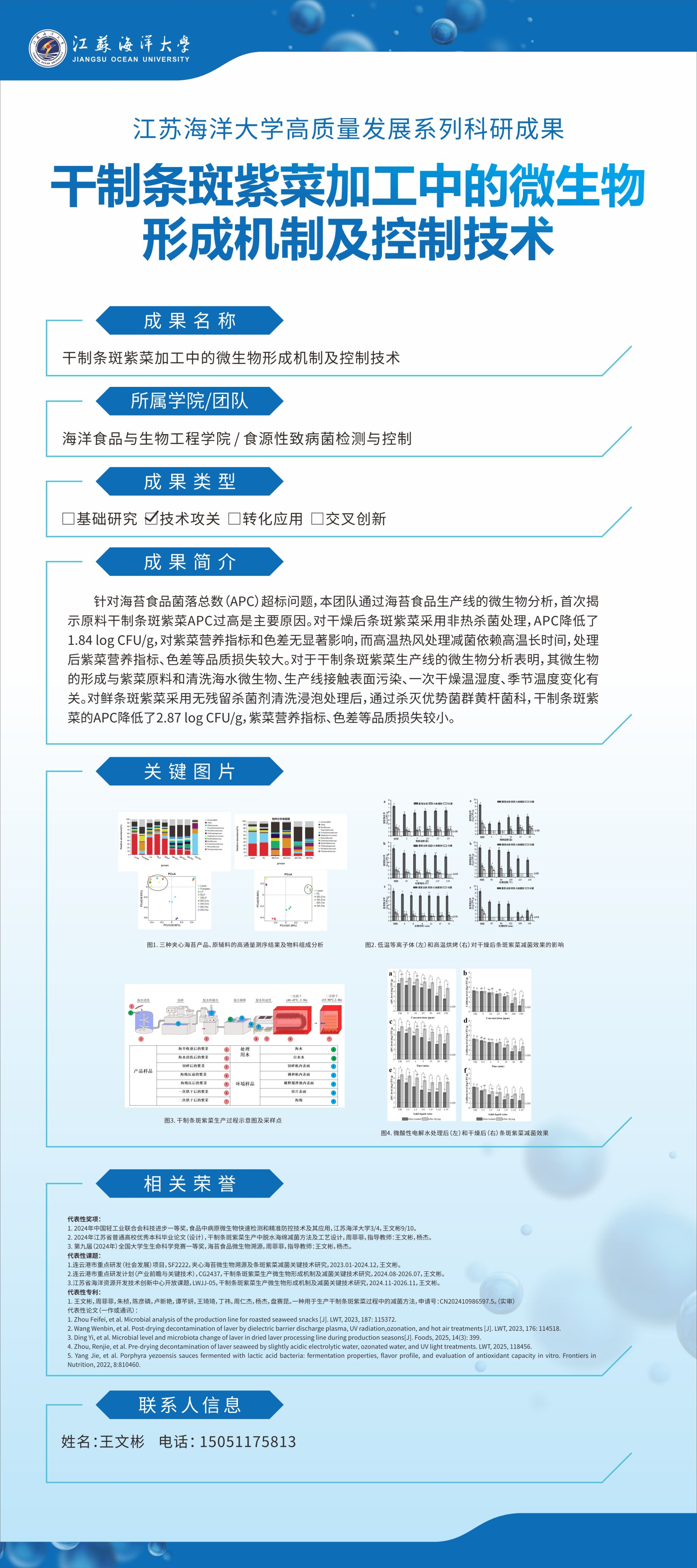 【成果名称】:干制条斑紫菜加工中的微生物形成机制及控制技术
