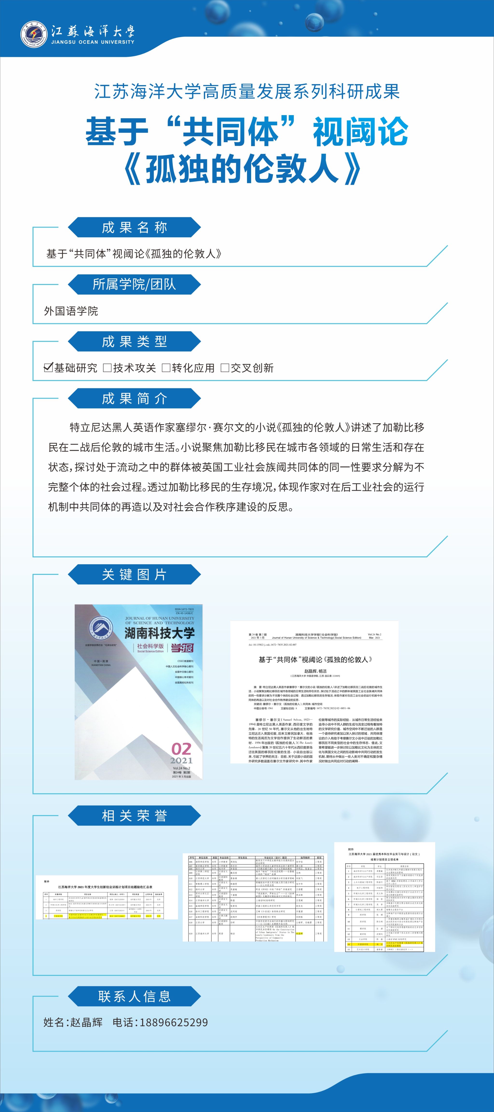 【成果名称】:基于“共同体”视阈论《孤独的伦敦人》