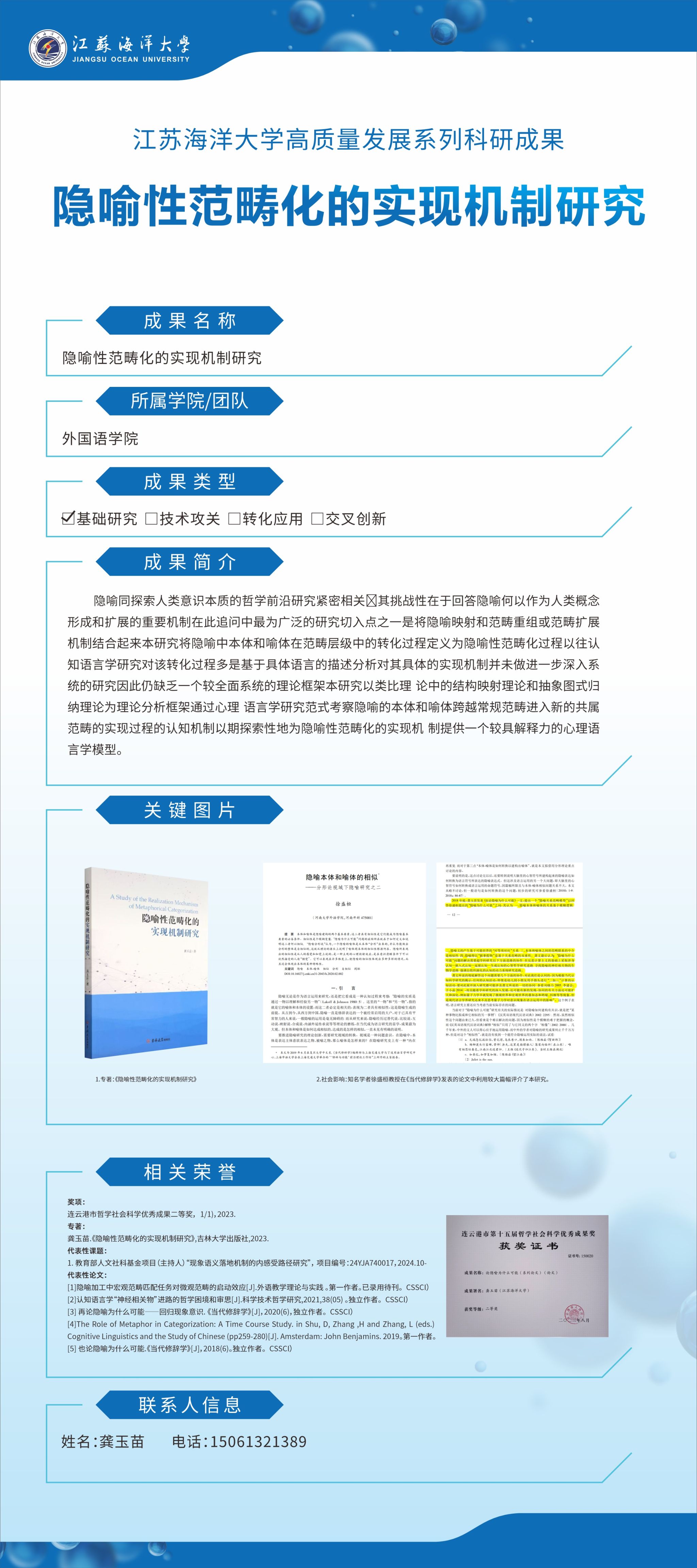 【成果名称】:隐喻性范畴化的实现机制研究