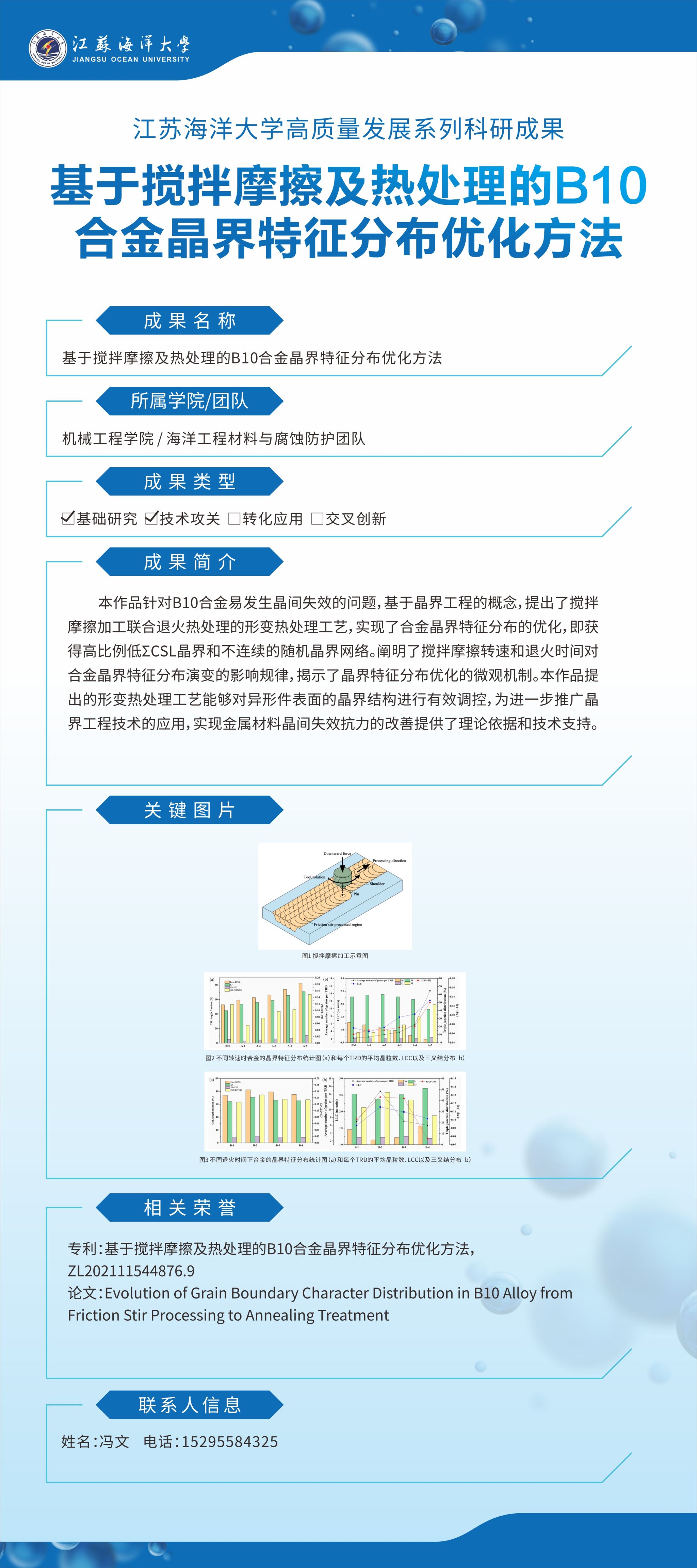 【成果名称】:基于搅拌摩擦及热处理的B10合金晶界特征分布优化方法