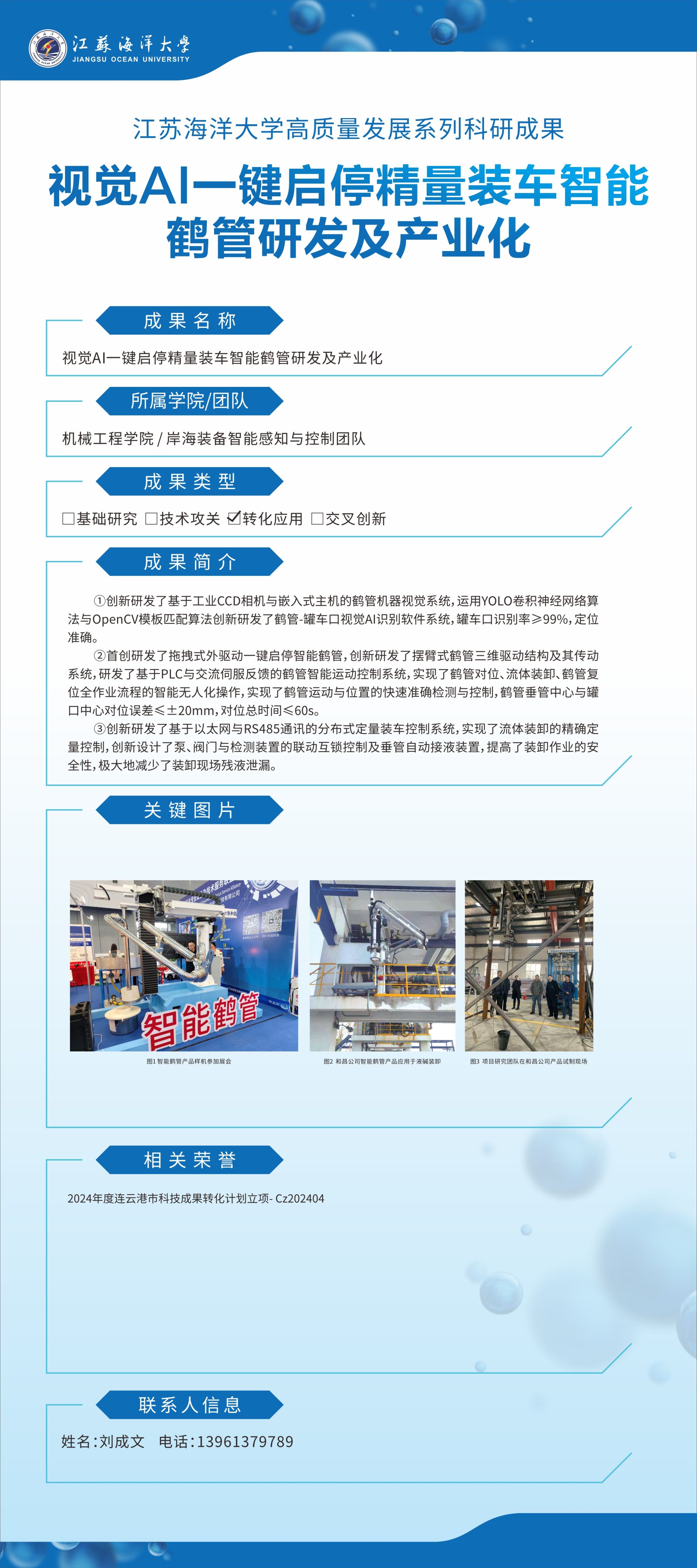 【成果名称】:视觉AI一键启停精量装车智能鹤管研发及产业化