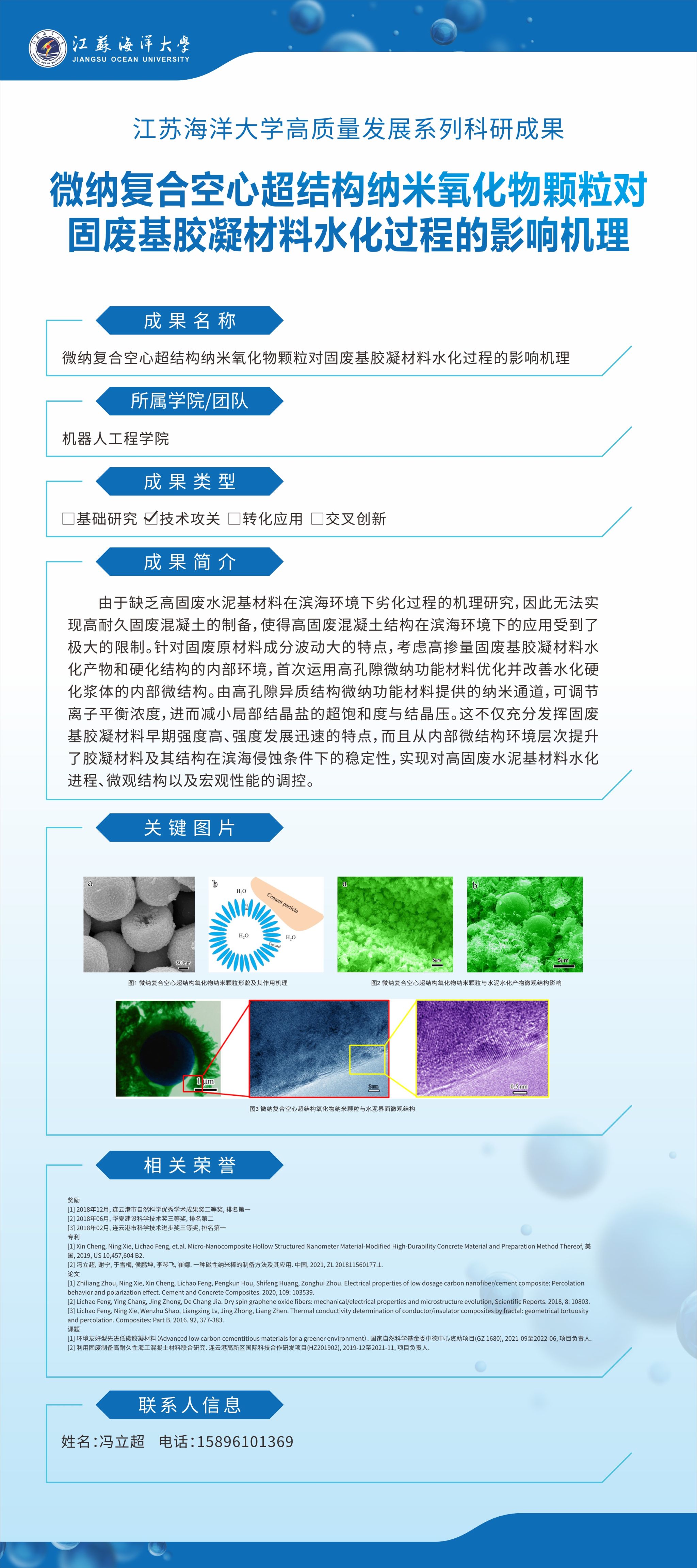 【成果名称】:微纳复合空心超结构纳米氧化物颗粒对固废基胶凝材料水化过程的影响机理
