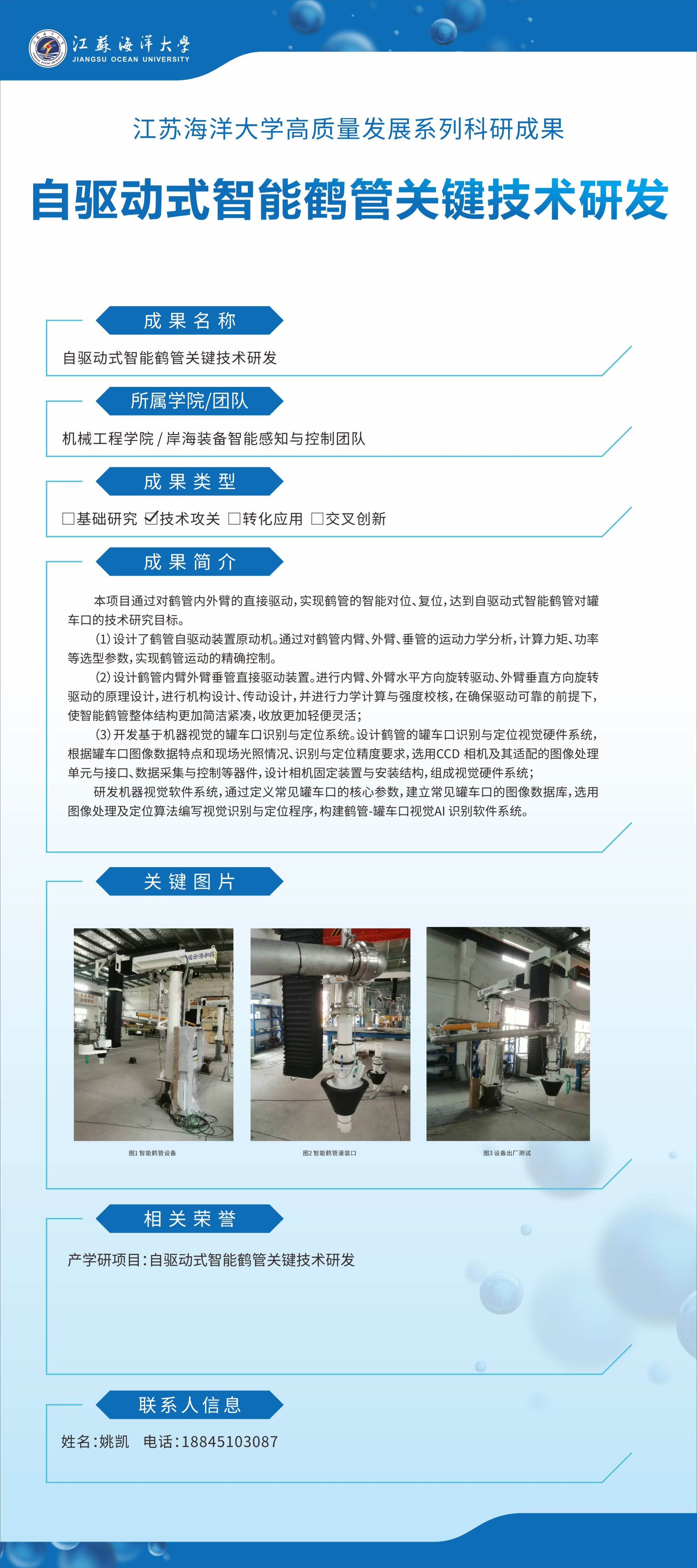 【成果名称】:自驱动式智能鹤管关键技术研发