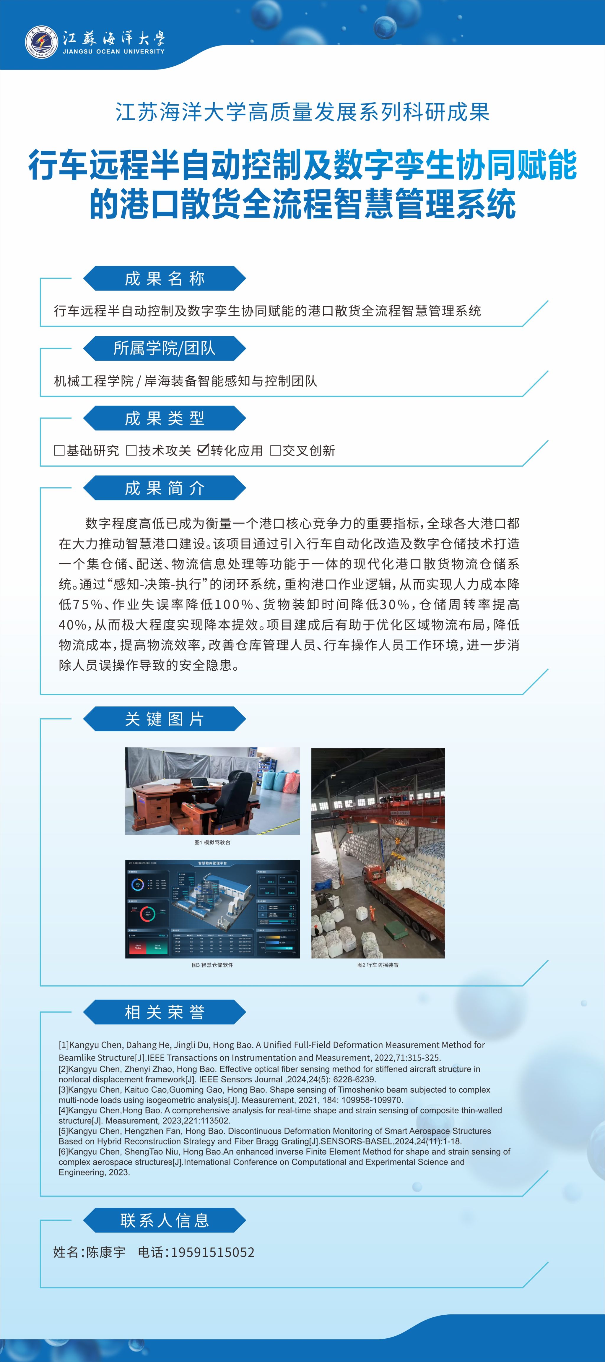 【成果名称】:行车远程半自动控制及数字孪生协同赋能的港口散货全流程智慧管理系统