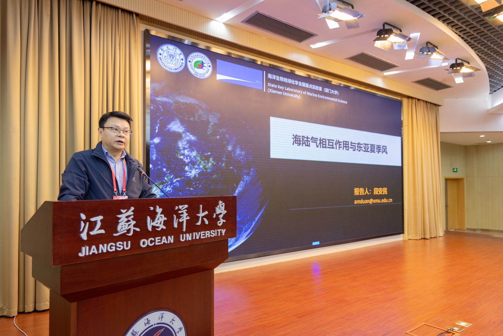 段安民教授在《海陆气相互作用与东亚夏季风》的报告中,系统阐述了东亚夏季风的形成与变化机制,揭示了热带海表温度异常、中纬度海气过程及青藏高原热力强迫对季风演变的共同作用,强调了跨洋盆海气相互作用的关键影响,并指出青藏高原在能量蓄积与信号放大中的重要地位。