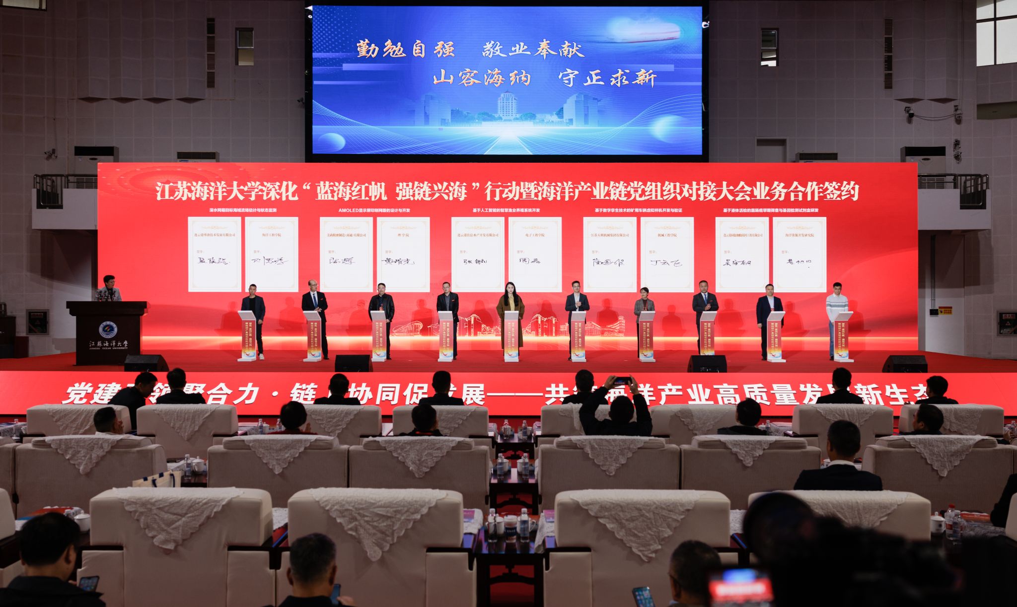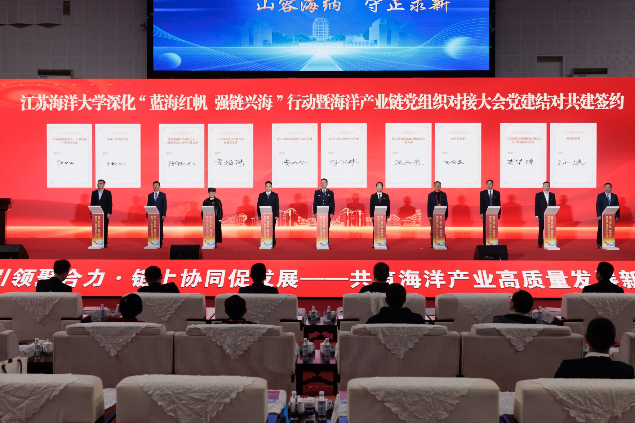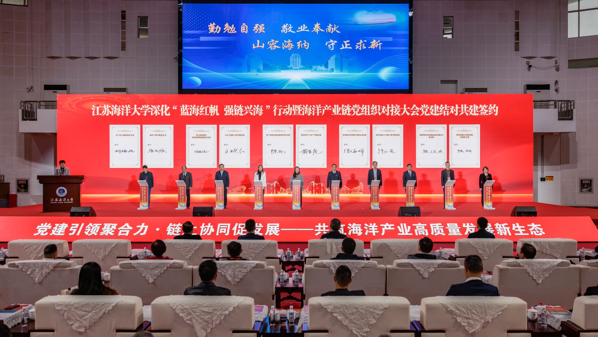 本次大会是江苏海洋大学深化“蓝海红帆 强链兴海”行动的关键一步,也是推动海洋产业链党组织对接的生动实践。学校将以此次大会为契机,持续深化校地企协同创新机制,推动党建链与产业链、创新链精准对接、深度融合,为服务国家海洋强国战略、助力江苏海洋经济高质量发展注入强劲动能。