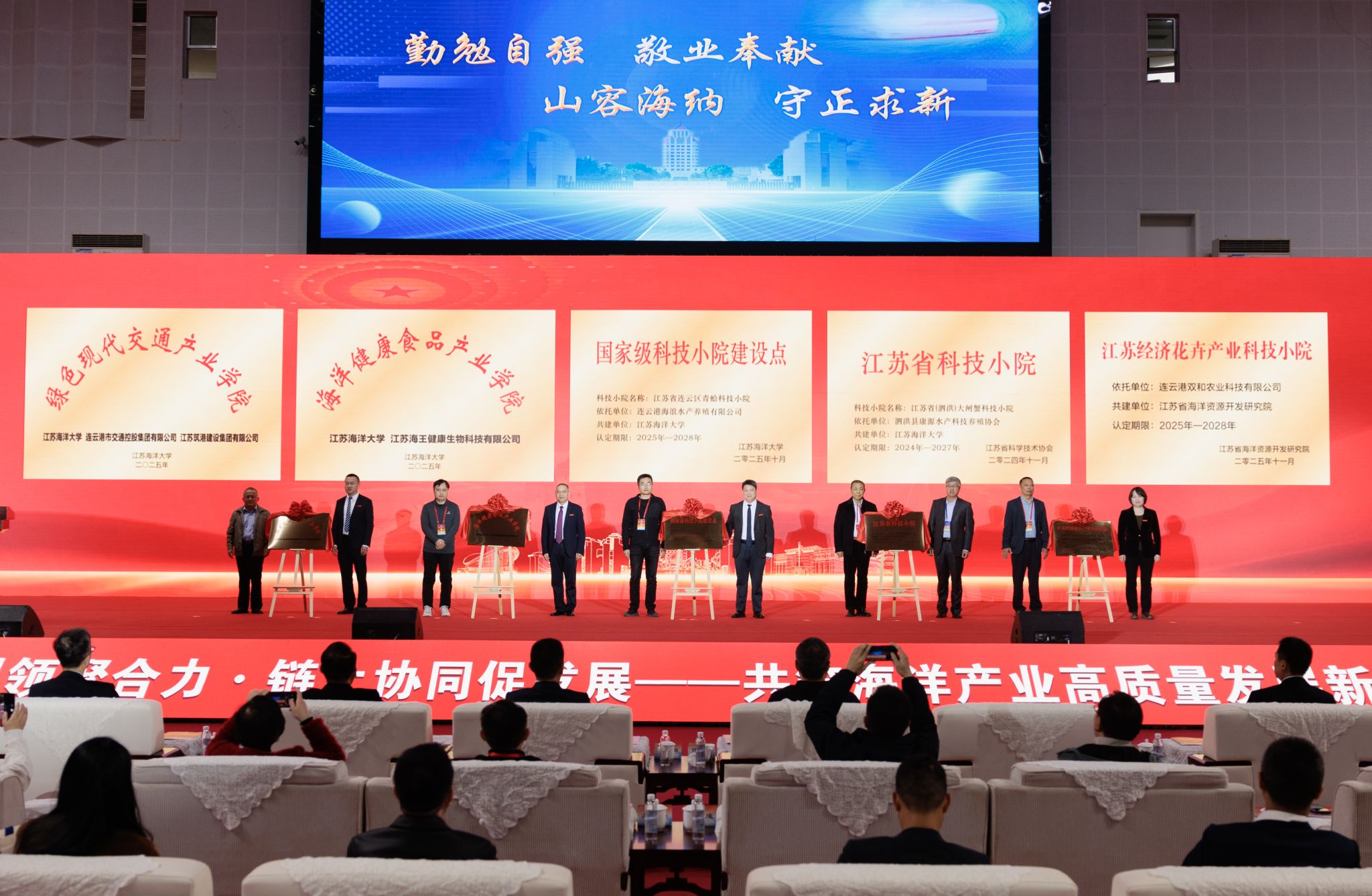 来自江苏省自然资源厅、江苏省工业和信息化厅、江苏省海涂研究中心、江苏省产业技术研究院、江苏省沿海开发投资有限公司等相关部门、科研院所的负责人,全省海洋产业链企业等负责人,江苏省涉海产学研合作联盟、涉海科研机构专家代表,学校相关学院、部门负责人,教师代表,齐聚一堂,共谋发展。