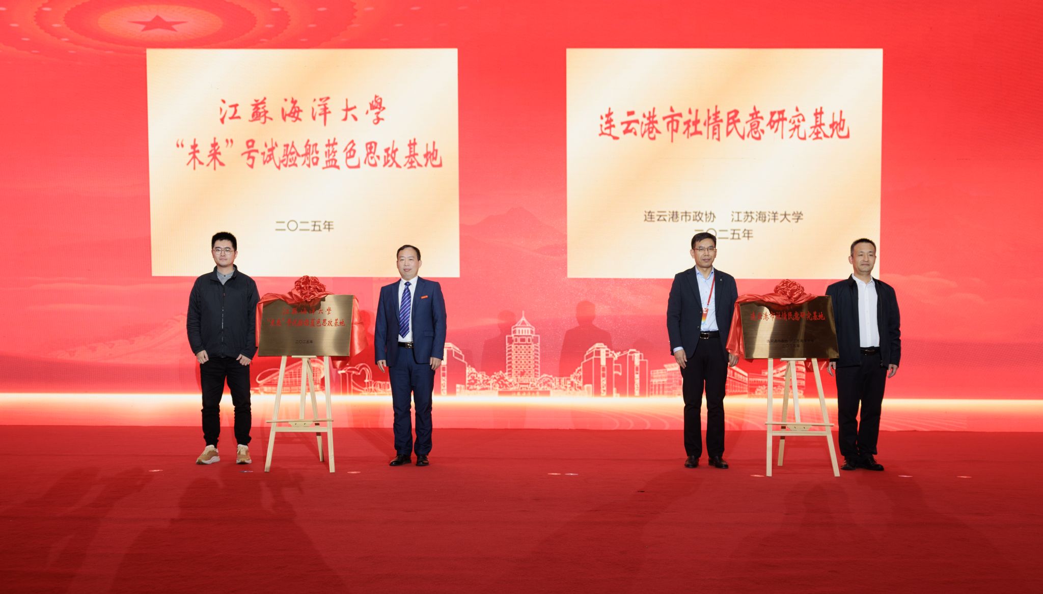 揭牌仪式上,共有2家产学研合作基地、5家实习基地、2家产业学院、3家科技小院、4家研究生工作站,以及“未来”号试验船蓝色思政基地等正式揭牌。