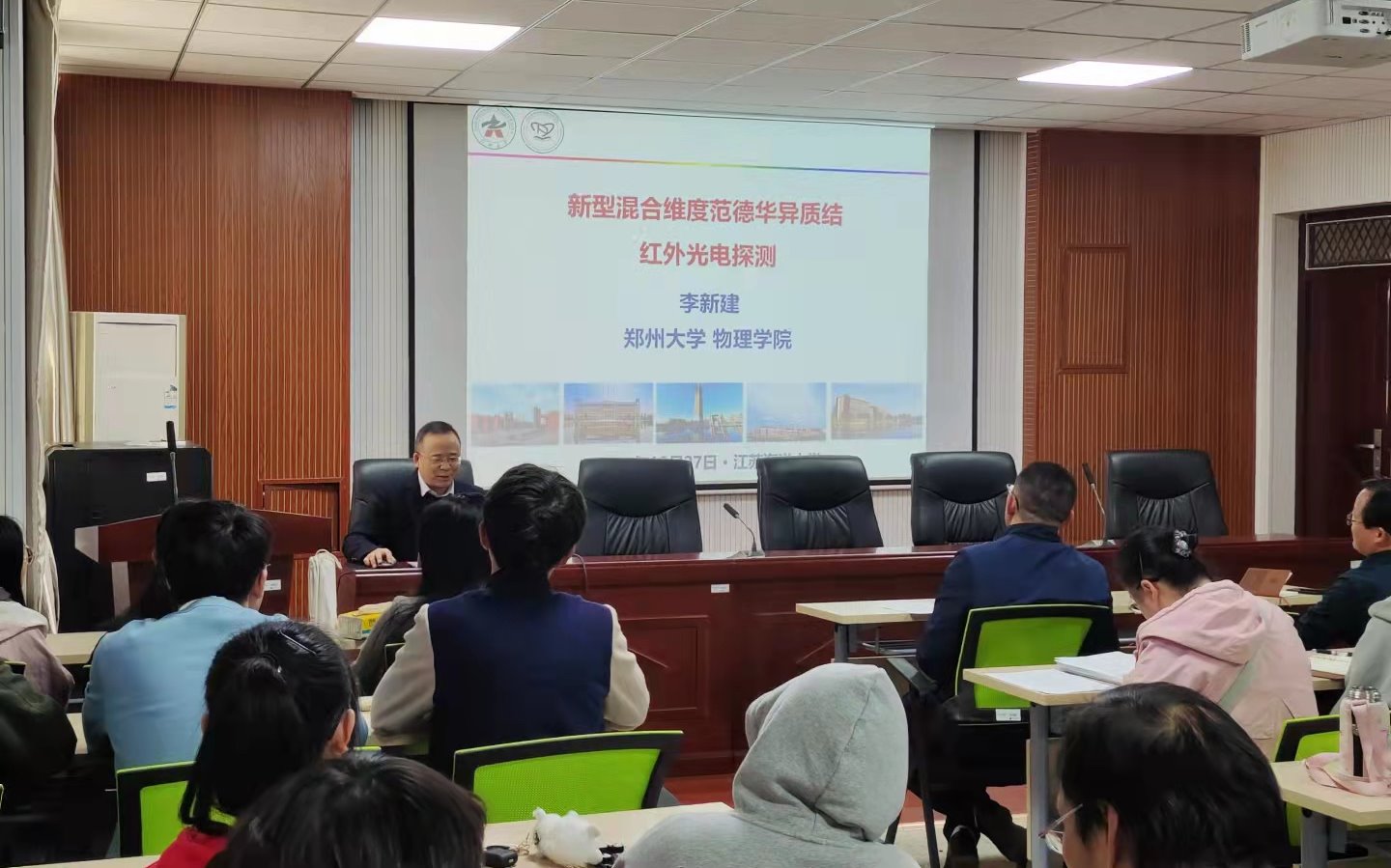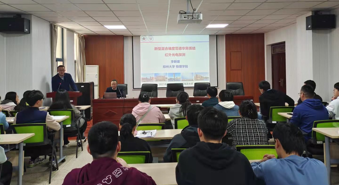 10月27日,应理学院邀请,郑州大学物理学院李新建教授在定海楼512会议室作了题为“二维半导体/半金属室温红外光电探测研究”的报告。理学院部分教师、研究生及光信、新能源专业部分学生参加了报告会。报告会由理学院副院长黄增光主持。