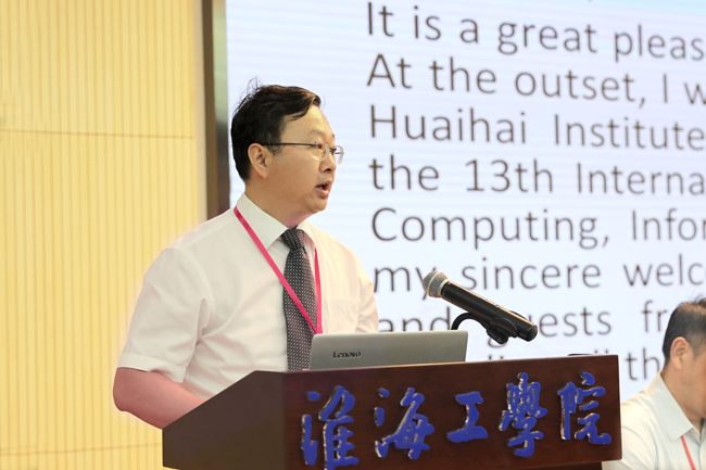 宁晓明发表题为Joint Construction and Sharing, Mutual Learning and Benefits——Leading New Engineering Discipline Construction with Innovative Computing, Information andControl的讲话。作为承办方,他代表淮海工学院向各位远道而来的领导、嘉宾和专家学者们表示热烈的欢迎。宁晓明指出,淮海工学院于1985年创办,建校30多年来,先后获批硕士学位授权单位、博士学位授予立项建设单位、国家科技企业孵化器、“十三五”产教融合发展工程规划项目。近年来,学校积极构建并不断夯实“综合框架、工科主体、海洋特色”的学科专业体系,计算机科学与技术是江苏省品牌专业,电子信息类、计算机类专业是江苏省重点专业。当前,全校上下凝心聚力,正在全力推进江苏海洋大学创建工作。宁晓明表示,此次会议以“国际创新计算、信息与控制”为主题,对于高等教育领域推进“新工科”建设具有前瞻性、引领性和基础性的作用。同时,他也对推进创新计算、信息与控制领域的开放建设提出了三点建议:一是要共建共享,充分发挥优质资源的整合效应;二是要互学互鉴,共同开创国际交流与合作的新境界;三是要以人为本,推动科学研究与教育教学的深度融合。