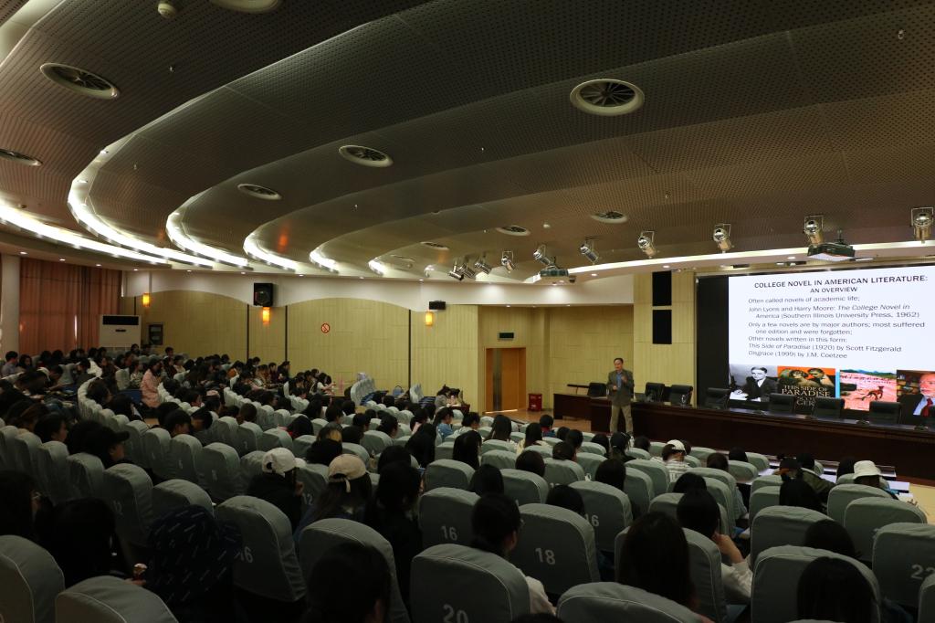 4月18日下午,美国加州州立大学奇科分校张爱平教授应邀在会议中心黄海厅先后为外国语学院老师和学生作了两场学术报告。