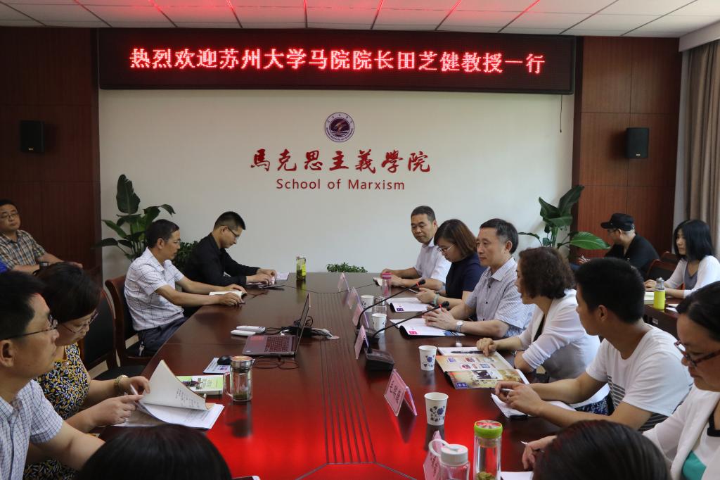 6月14日下午,苏州大学马克思主义学院院长、博士生导师田芝健教授应邀在我校马克思主义学院会议室为学院全体教师作学术报告。马克思主义学院领导、教师参加了报告会。报告会由学院院长杨雪英教授主持。