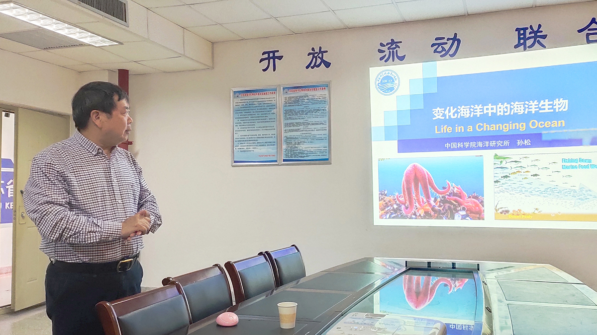 在第十三个“世界海洋日”即将到来之际,中国科学院海洋研究所研究员、国际欧亚科学院院士孙松应邀来我校访问,并作题为“变化海洋中的海洋生物(Life in a changing ocean)”的学术报告。报告会于6月7日下午在江苏省海洋生物技术重点实验室四楼会议室举行,校科学技术处处长申欣教授主持。