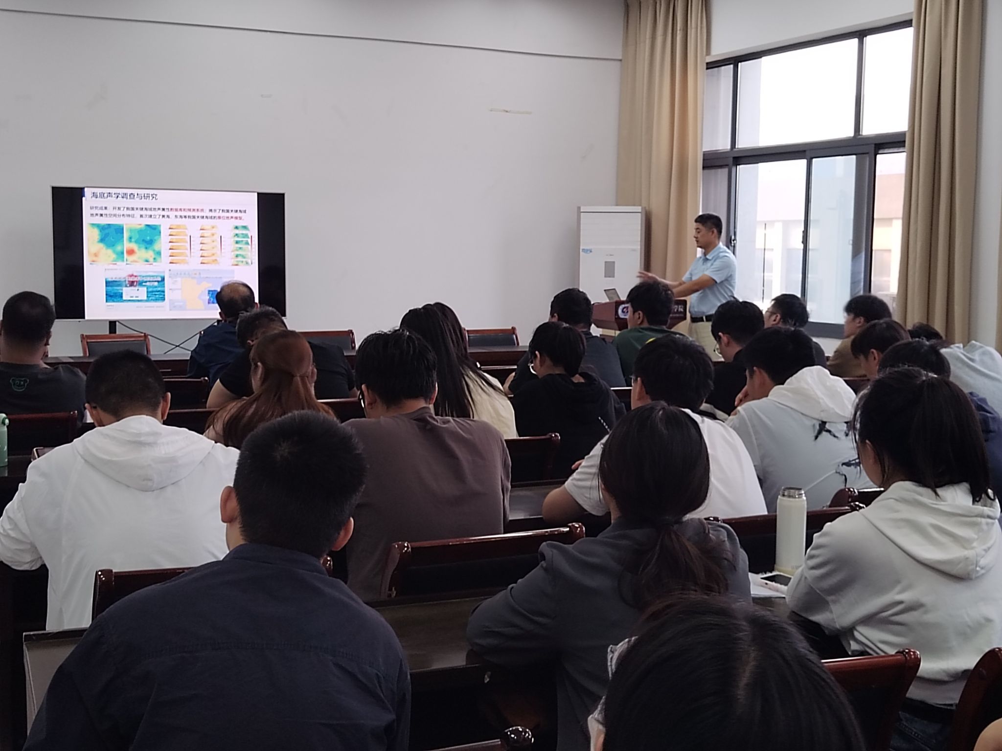 10月15日,自然资源部第一海洋研究所阚光明研究员应邀为我校海洋技术与测绘学院师生在测绘楼302作了题为“海底沉积物声学特性测量技术与应用”的学术报告。该院副院长吕海滨主持报告会,学院60余名师生参加了报告会。