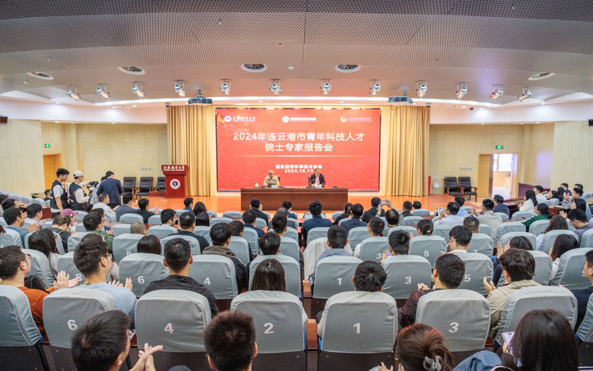 活动由连云港市科学技术协会、江苏海洋大学、共青团连云港市委员会联合举办,旨在深入贯彻落实党的二十届三中全会精神,托举我市青年科技人才成长成才,为科技自立自强提供坚强人才支撑。2023-2024省青年科技人才托举工程、市青年科技人才托举工程、市青年科技奖获得者,市青年科技人才库成员代表、市级学会代表、市青年科技工作者协会代表,市科协有关部门负责人以及我校科学技术处、理学院、计算机工程学院、电子工程学院、环境与化学工程学院等单位负责人及师生代表300余人聆听了学术报告。