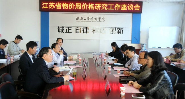 5月10日上午,江苏省物价局价格研究工作座谈会在商学院会议室举行,副校长舒小平教授出席了座谈会。省物价局价格研究所所长华文、副所长顾瑾,市物价局副局长丁元奎、副调研员杨佃春等省市物价局的领导,万联能源集团监事会主席刘玉来,四季农产品市场办公室主任徐渊,商学院院长宣昌勇以及参与课题研究的部分老师参加了座谈会。