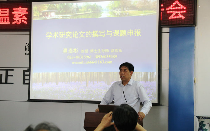 5月24日下午,南京理工大学经济管理学院副院长、博士生导师温素彬教授在商学院六楼会议室作了题为《学术研究论文的撰写与课题申报》的学术报告,报告由商学院院长宣昌勇主持,商学院六十余位老师参加了报告会。